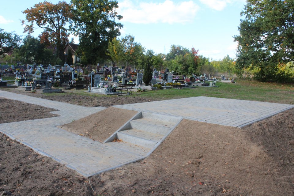 W Cybince na Cmentarzu Komunalnym powstała nowa alejka z kostki typu POLBRUK. Wartość inwestycji to kwota 34 895, 52 zł.